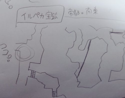 ヒモロギの森のガウンジ、迷子になりまくってる内にレベルが上がってたので戦闘は楽勝だったけど、辿り着くまでがとにかく大変で、手書きの地図を見ながらなんとかやった