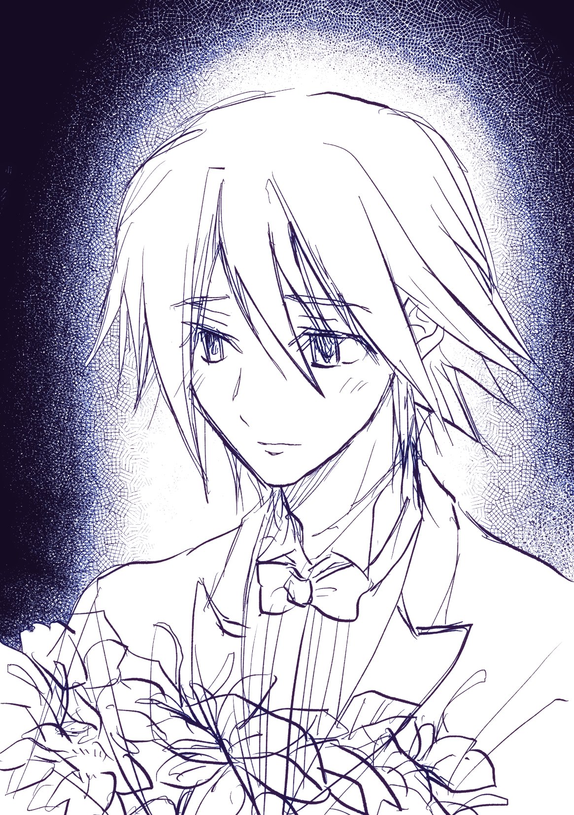 クリア記念に何か描いとこ〜!と思ってザクザクらくがきしてたら一ノ瀬の髪型に近いものを手癖で過去に描いたことある気がする!なんだっけ!?あ!ユーリだ!てなった どぅいゆの 色もそれっぽそうかも
