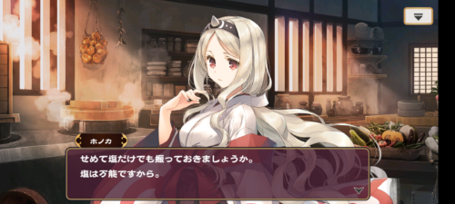 ちょっと「ん……???」て思いつつ、「完璧なホノカ様のやることに間違いは無いはず」で思考停止して結果的に不味い物食べさせられるライコウ村の娘さん達、めちゃくちゃ揺り籠イベントというかライコウの物語の延長線上にあるシナリオなので「ウメエ〜〜〜〜!!!!」てなった。